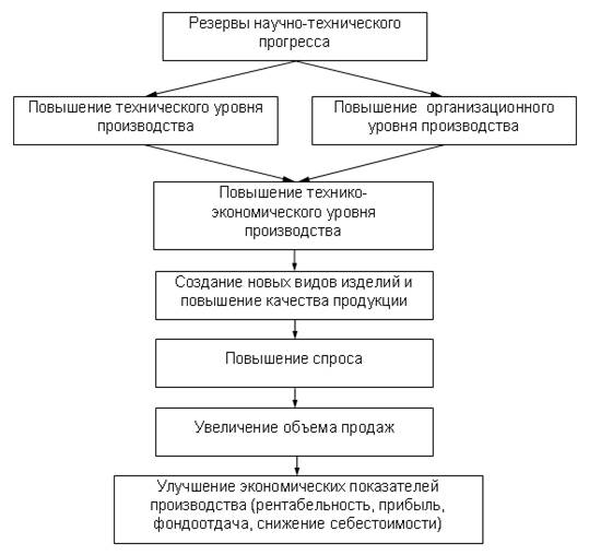Рис. 2.1- Схема сохранения объема продаж продукции Влияние НТП на повышение эффективности производства продукции можно пояснить на схеме (рис. 2.2).